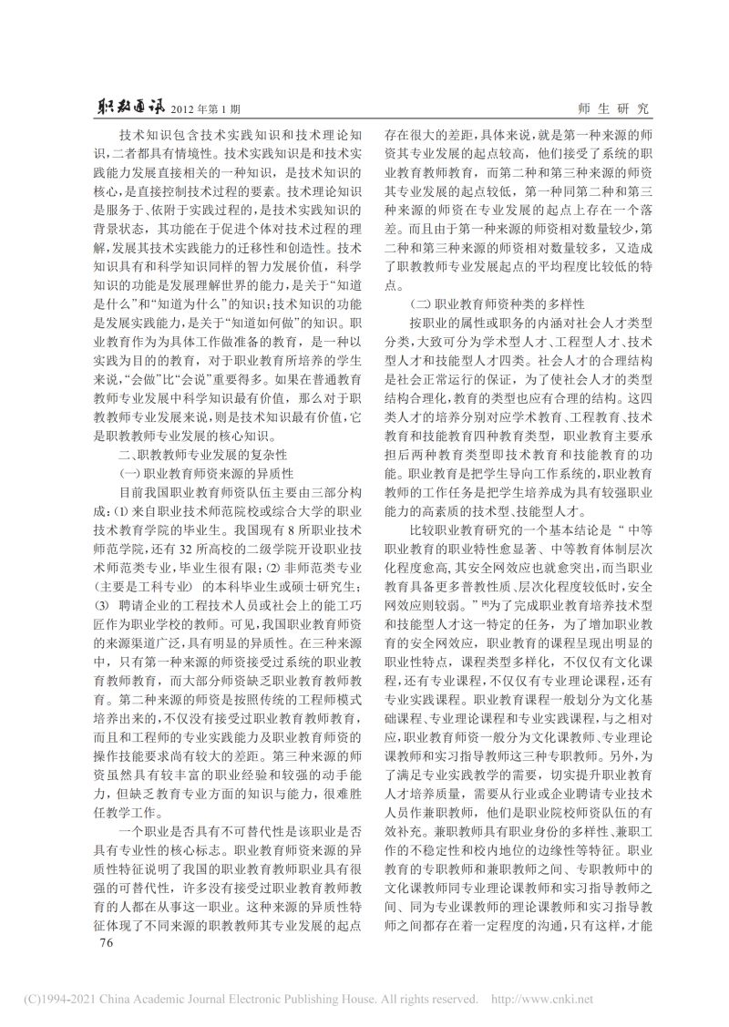 关于职教教师专业发展特点的思考