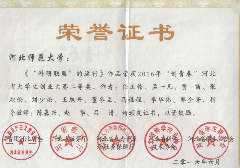 2016创青春河北省大学生创业大赛二等奖