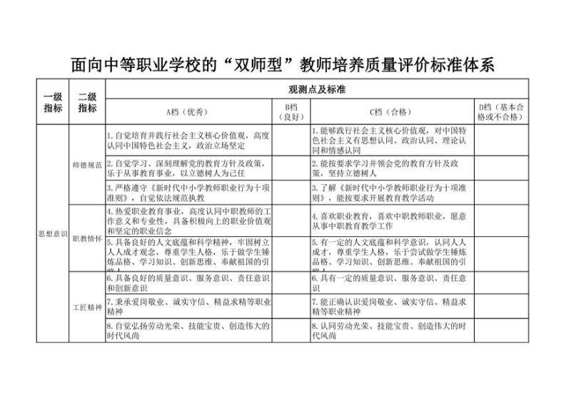 面向中等职业棋牌平台 的“双师型”教师培养质量评价标准体系