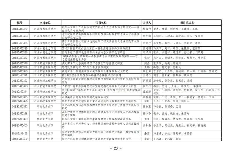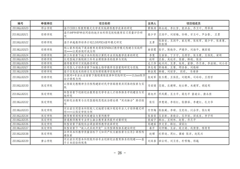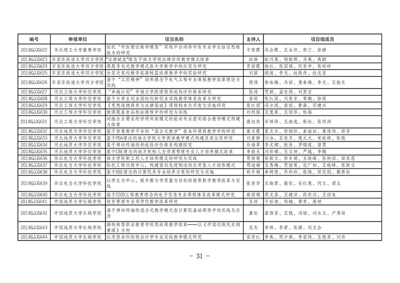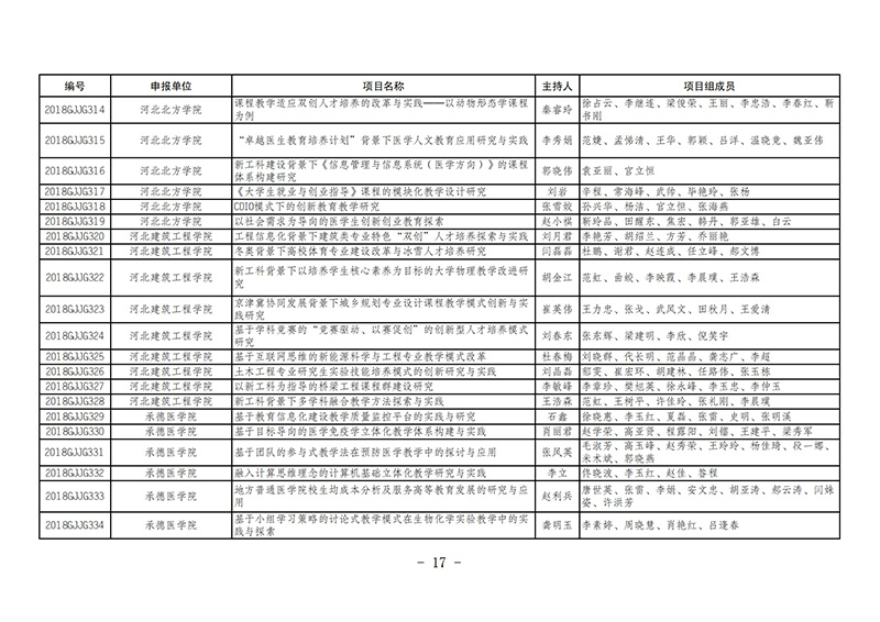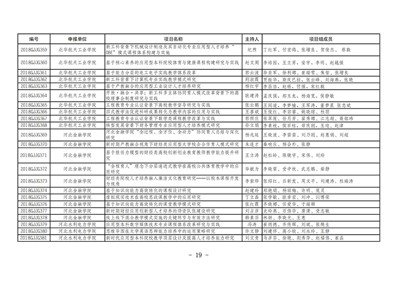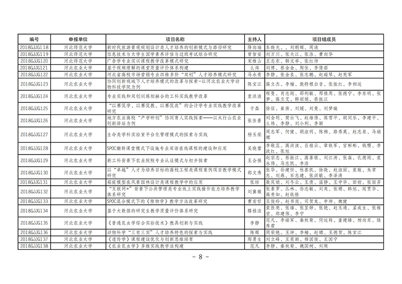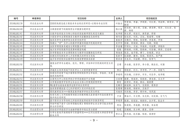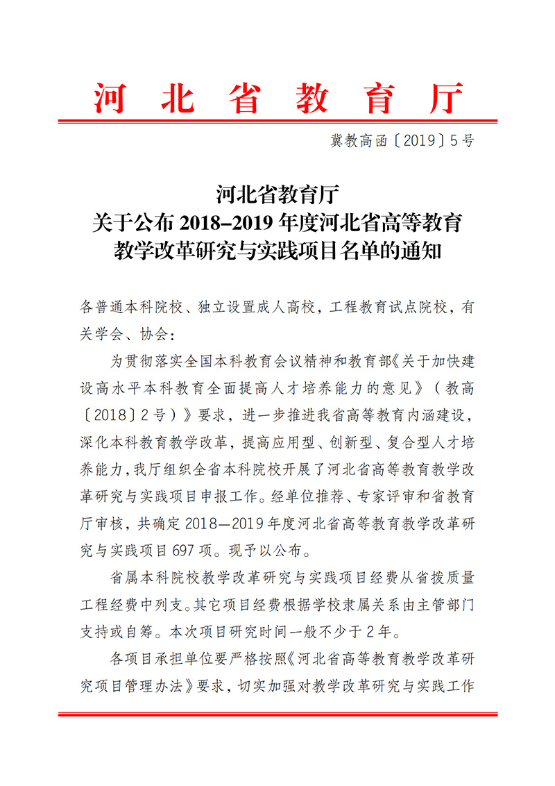 课题8-9-2018--2019年度河北省高等教育教学改革与实践项目名单的通知